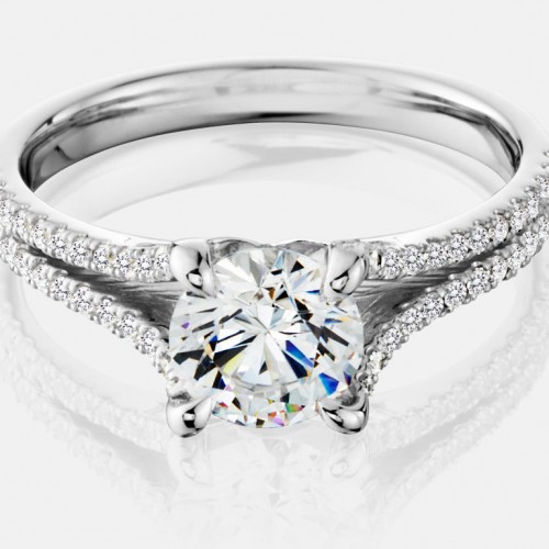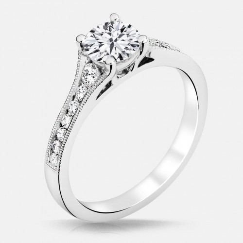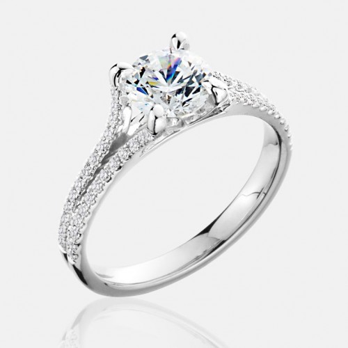 Twist half diamond shank 4 prong Mounting set with 24 round brilliant diamonds totaling 0.11 carats