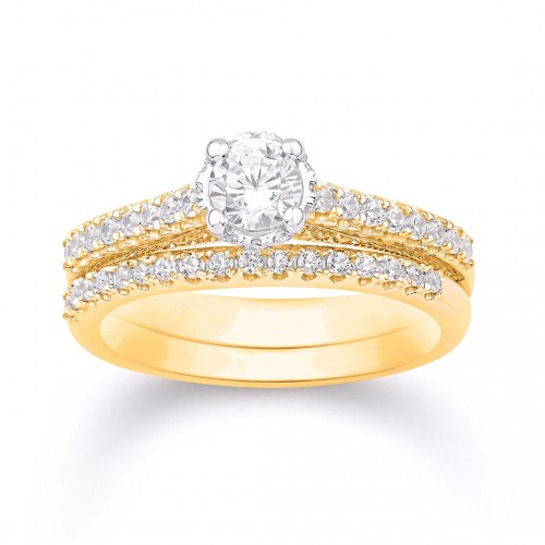 14K Yellow Gold 1.57 Carat (0.40 Center Diamond) Round Bridal Ring-0525595-YG
