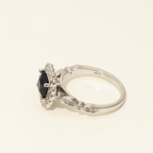 Cushion Sapphire Halo Ring in 14kt White Gold with Diamonds ( CSRNG2005