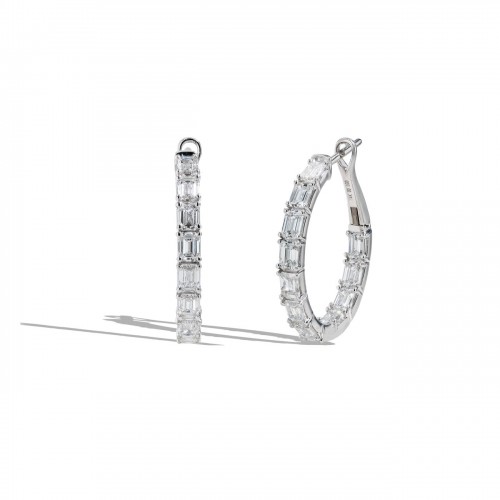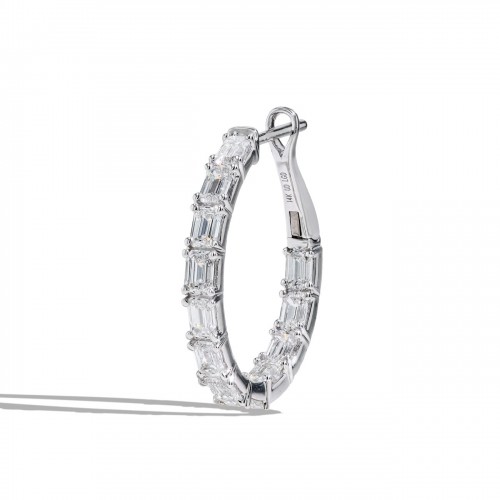 Four Carat Emerald In and Out Lab Grown Diamond Hoop Earrings