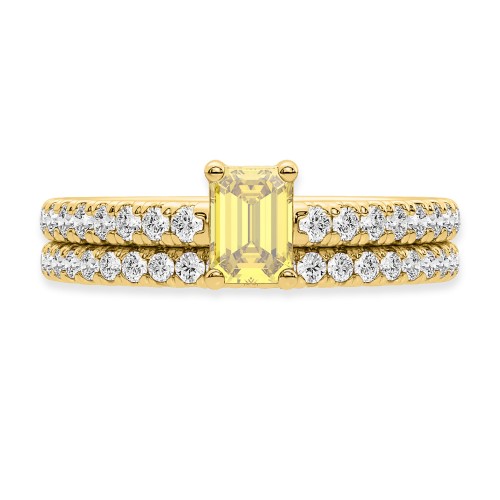 My Trio Rings Zaila 2 CTW Lab Grown Emerald Solitaire Yellow Diamond Bridal Set in 10KT Yellow Gold