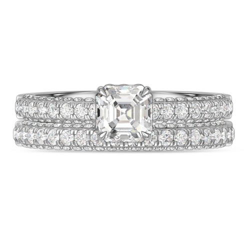 My Trio Rings Zola 2-7/8 CTW Lab Grown Diamond Asscher Solitaire Bridal Set in 10KT White Gold