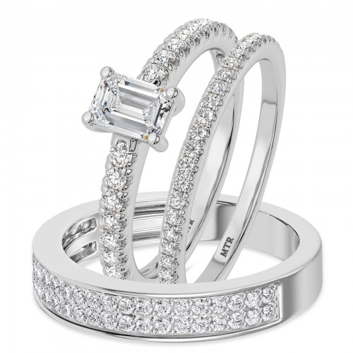 My Trio Rings Zaila 2-1/2 CTW Lab Grown Diamond Emerald Solitaire Trio Set in 10KT White Gold
