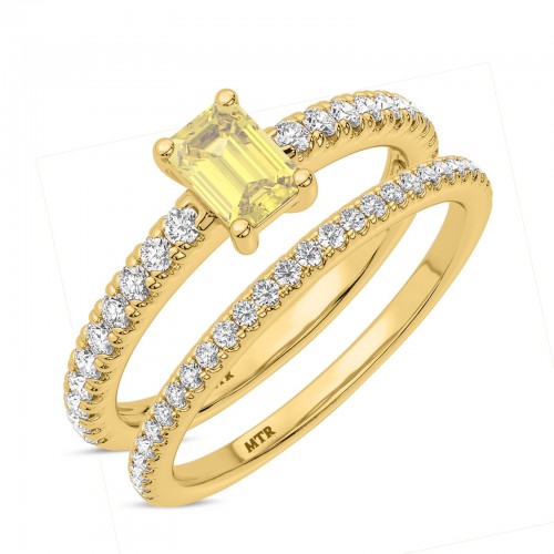 My Trio Rings Zaila 2 CTW Lab Grown Emerald Solitaire Yellow Diamond Bridal Set in 10KT Yellow Gold