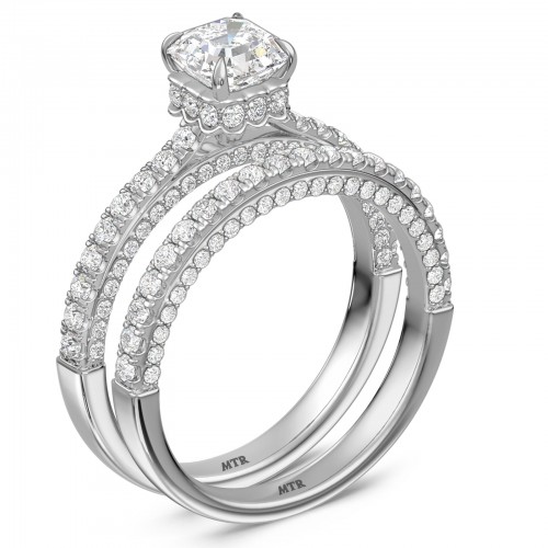 My Trio Rings Zola 2-7/8 CTW Lab Grown Diamond Asscher Solitaire Bridal Set in 10KT White Gold