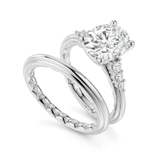 Noam Carver LU002-01WA22-A 14K White Gold Classic Four-Prong Sidestone Oval Luna Engagement Ring