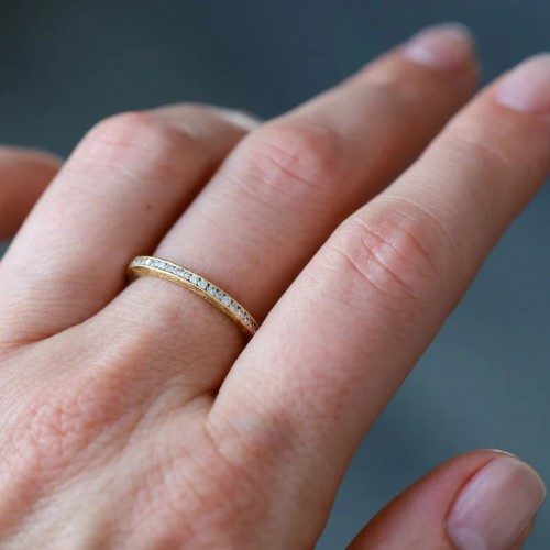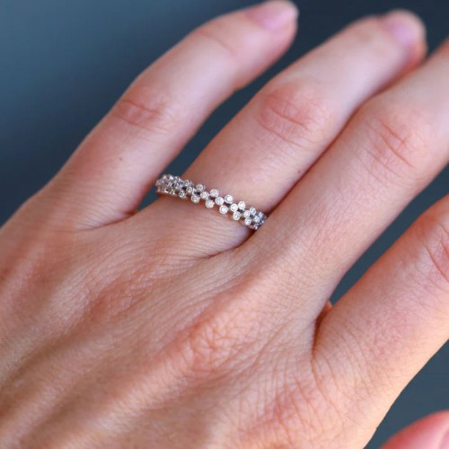 Sethi Couture 18K White Gold Bezel White Diamond Eternity Band with Milgrain Finish – Size 7