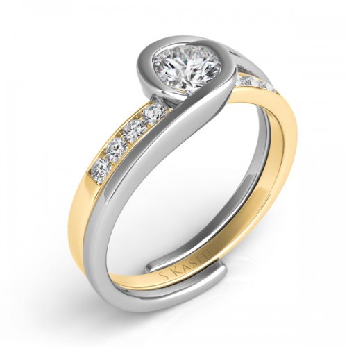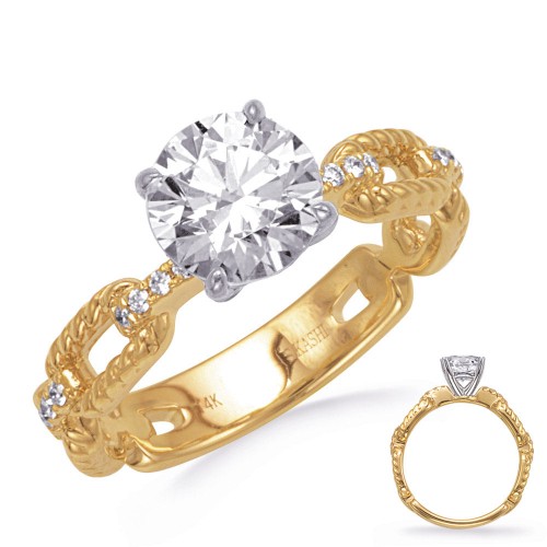 14KYW Yellow & White Gold Engagement Ring 7x5m EN8384-7X5MECYW