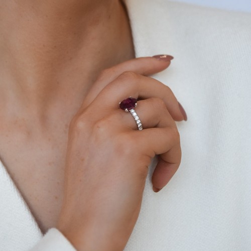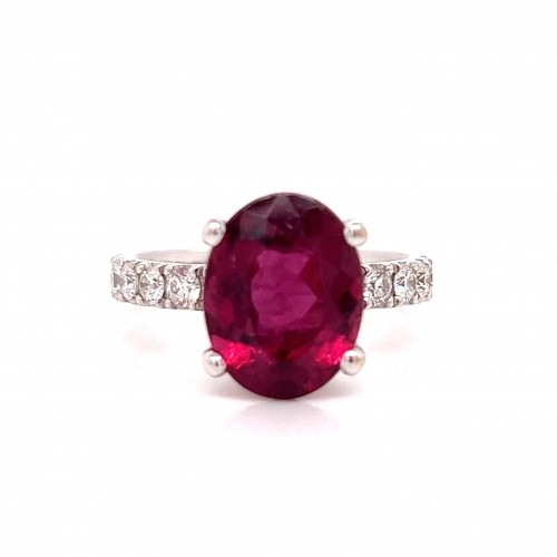 18ct White Gold Earth Grown Oval 4.11ct Rubellite with Diamond Set Claws UK M1/2