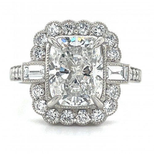 Aurora – Platinum 3.14ct Laboratory Grown Elongated Cushion Vintage Style Diamond Engagement Ring
