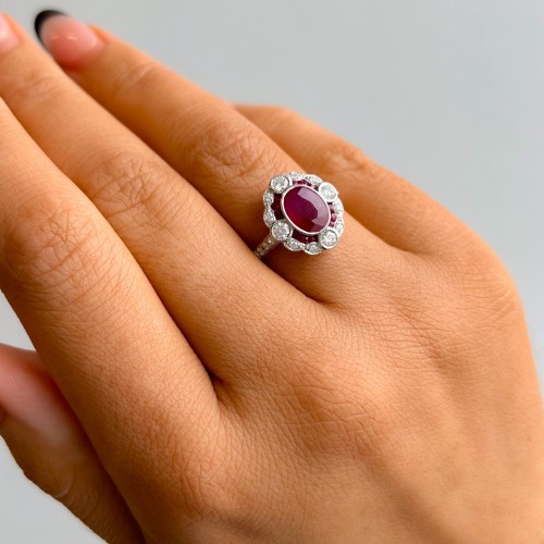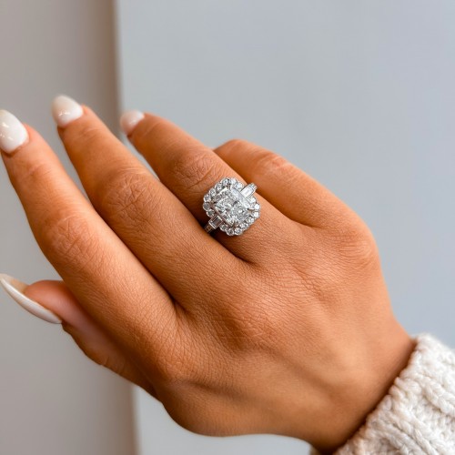 Aurora – Platinum 3.14ct Laboratory Grown Elongated Cushion Vintage Style Diamond Engagement Ring