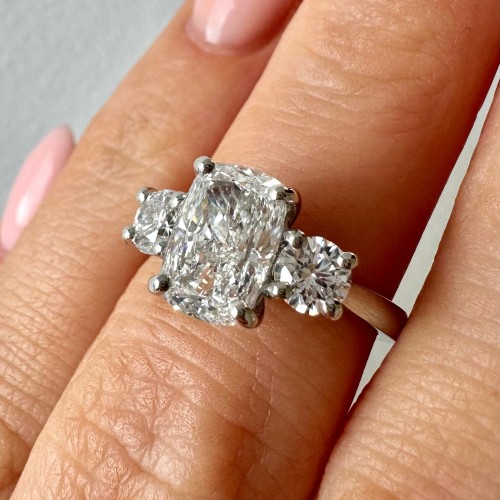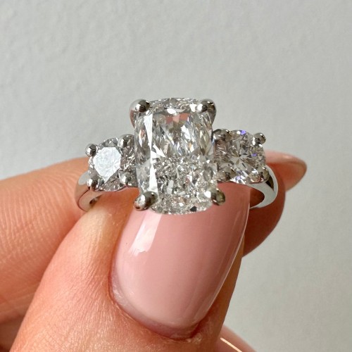 Verity – Platinum Laboratory Grown 2.63ct Elongated Cushion Cut Diamond Engagement Ring With Round Side Stones J 1/2