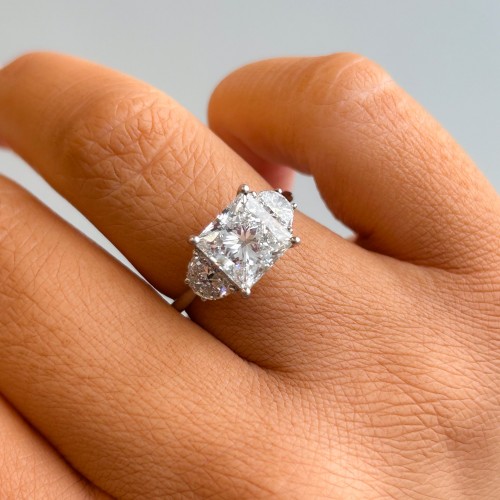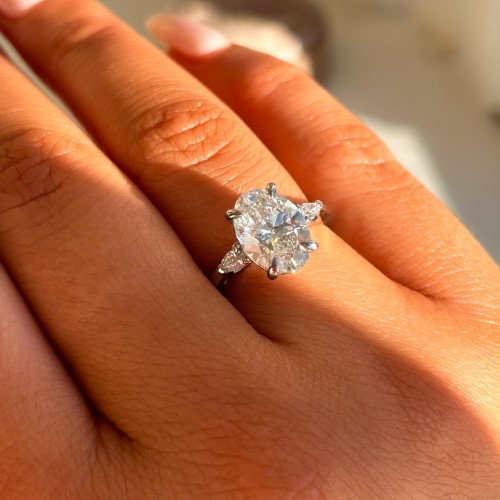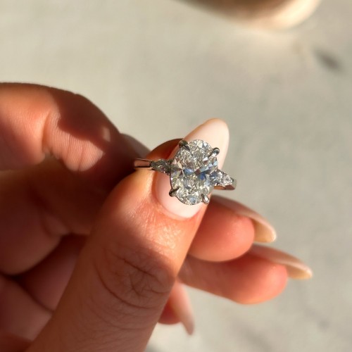 Sophia – Platinum 1.92ct Oval And Round Trilogy Laboratory Grown Diamond Engagement Ring L 1/2