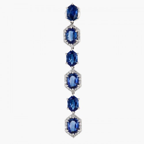 Blue Sapphire and Diamond Alternating In and Out Hoop Earrings