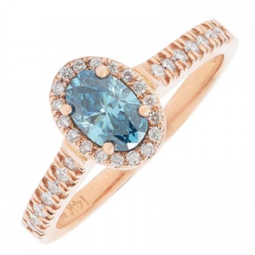 Blue Oval Diamond Halo Engagement Ring in 14kt Rose Gold (3/4ct tw) DSHFF0585