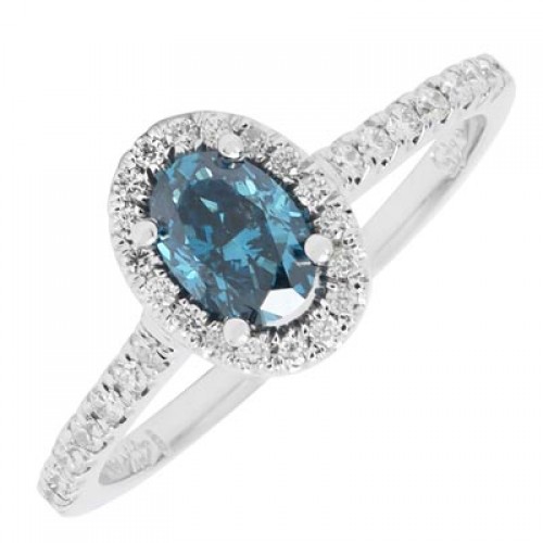 Blue Oval Diamond Halo Engagement Ring in 14kt White Gold (3/4ct tw) DSHFF0594