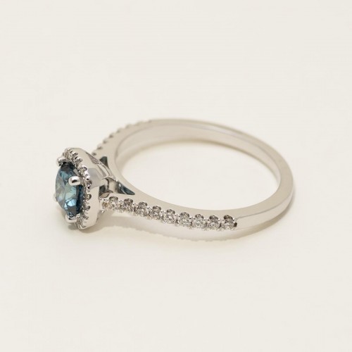 Cushion Blue Diamond Halo Engagement Ring in 14kt White Gold (3/4ct tw) DENG00562