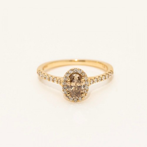 Champagne Oval Diamond Halo Engagement Ring in 14kt Yellow Gold (3/4ct tw) DENG00579