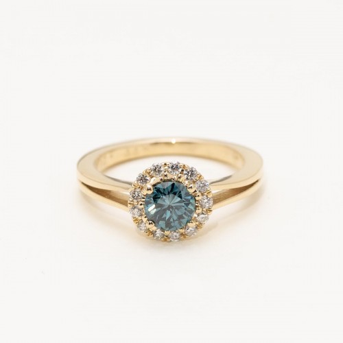 Blue Diamond Halo Engagement Ring in 14kt Yellow Gold (3/4ct tw) DENG00715