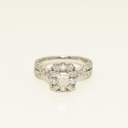 Radiant Cut Diamond Halo Engagement Ring in 18kt White Gold (1 1/2ct tw) DENG00864