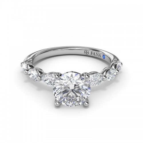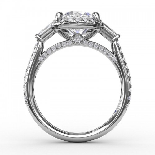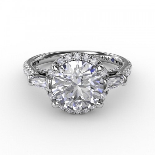 Vintage Round Diamond Halo Engagement Ring With Tapered Baguettes S3278