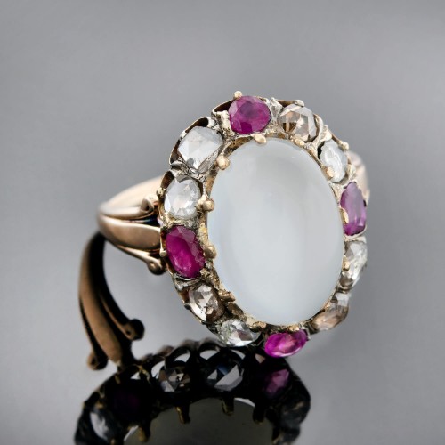 Victorian 18kt Natural No Heat Burma Ruby + Diamond Enamel Ring