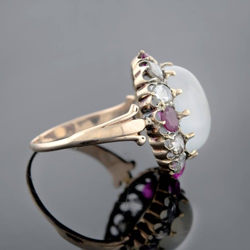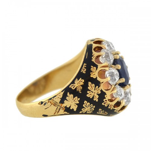 Victorian 18kt Natural No Heat Burma Ruby + Diamond Enamel Ring