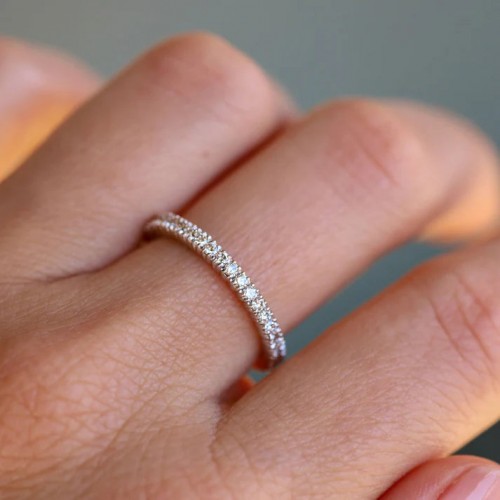 Sethi Couture 18K Yellow Gold Modern Bezel Mini White Diamond Eternity Band – Size 6.5
