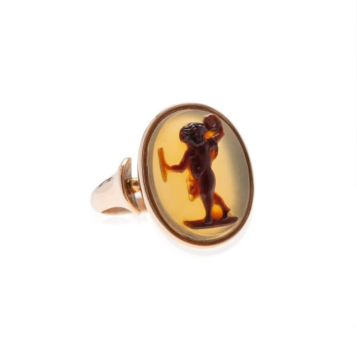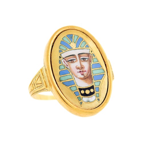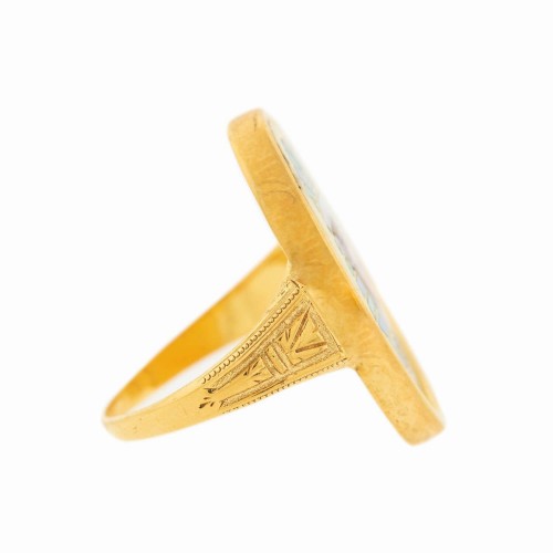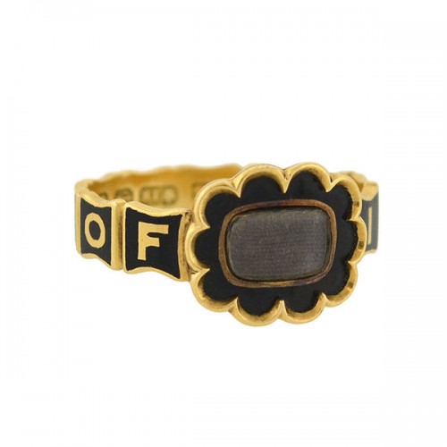 Early Victorian English 18kt Enamel & Woven Hair Mourning Ring