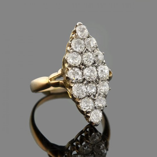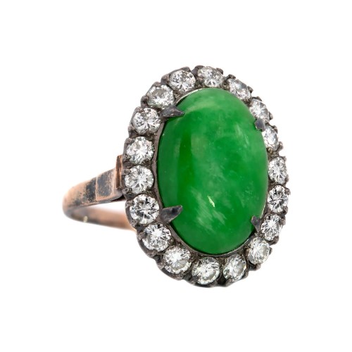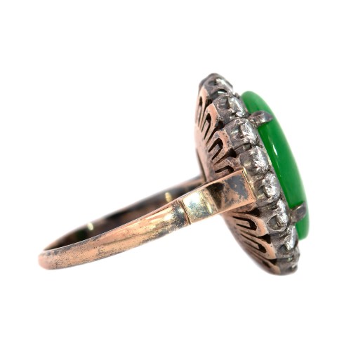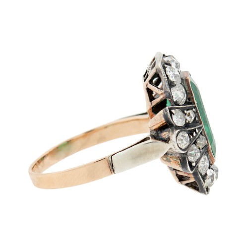 Victorian 15k + Sterling 3.50ctw Emerald + Diamond Cluster Ring