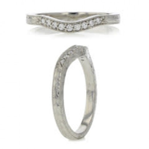0.09ct Full Cut Diamonds Curved Wedding Band in Platinum, size 7