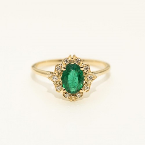Oval Emerald Ring in 14kt Yellow Gold with Diamonds (1/20ct tw) CSRNG2066