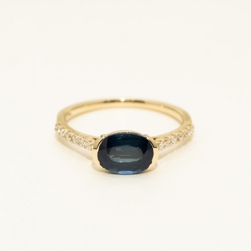 Oval Sapphire East West Ring in 14kt Yellow Gold with Diamonds (1/7ct tw) CSRNG2067