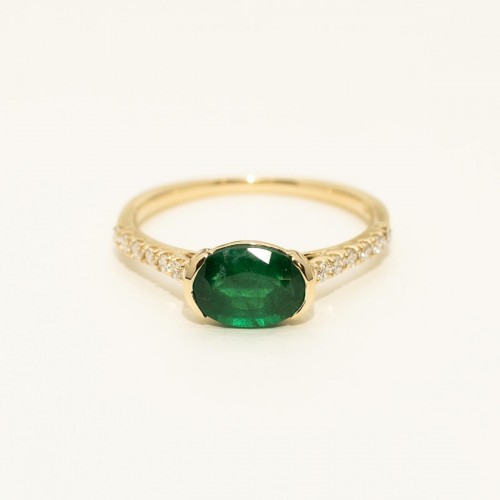 Oval Emerald East West Ring in 14kt Yellow Gold with Diamonds (1/7ct tw) CSRNG2068