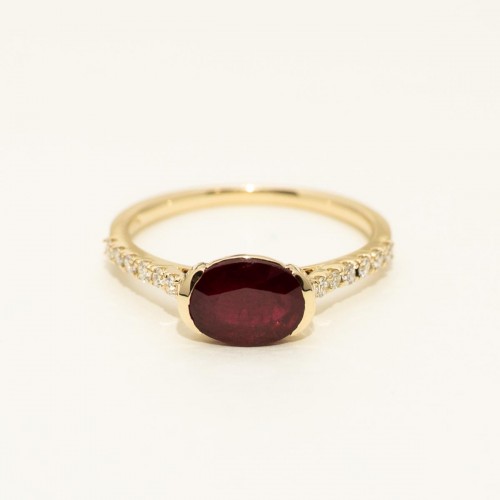 Oval Ruby East West Ring in 14kt Yellow Gold with Diamonds (1/7ct tw) CSRNG2069