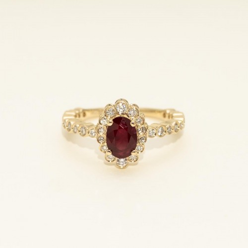 Oval Ruby Halo Ring in 14kt Yellow Gold with Diamonds (3/8ct tw) CSRNG2070