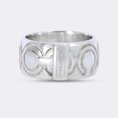 Coach 925 Silver 9.5mm Signature C Logo Wide Band Ring Size 7 (9.60g.)