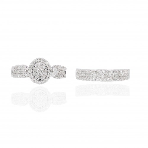 Oval Cluster Diamond Engagement Ring & Band 14KT Gold White Gold