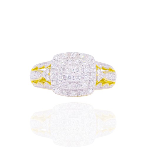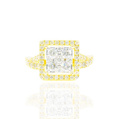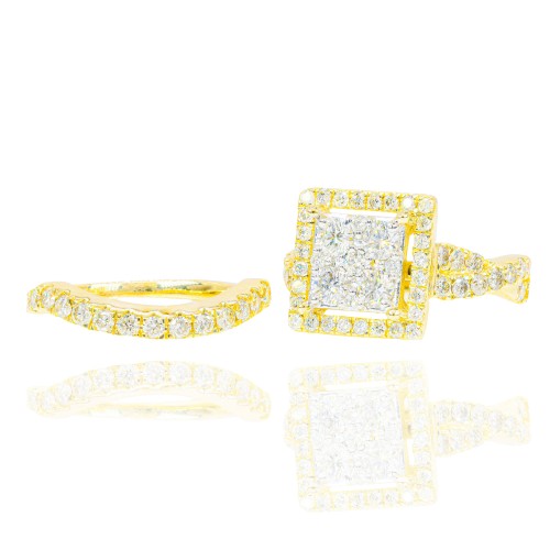 Princess Shape Open Halo Two-Tone Diamond Engagement Ring & Band 14KT Gold Yellow Gold