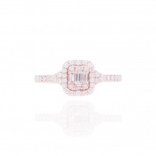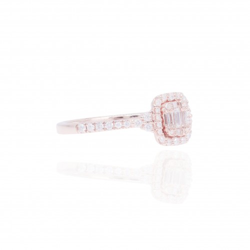 Princess Shape Halo Diamond Engagement Ring with Baguette Diamonds 14KT Gold Rose Gold