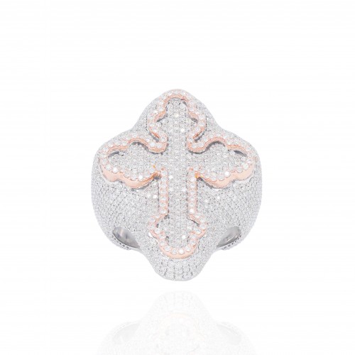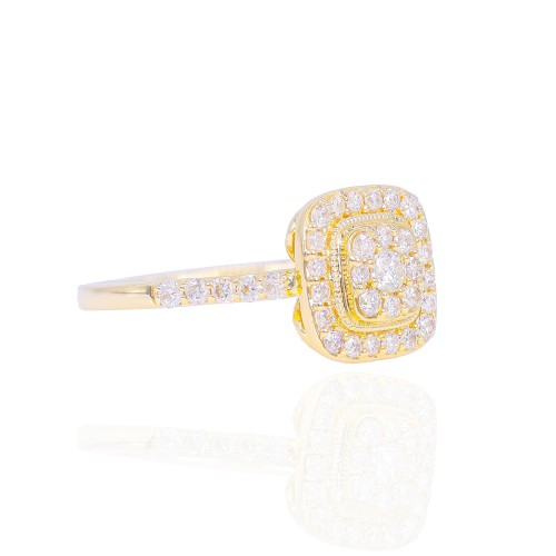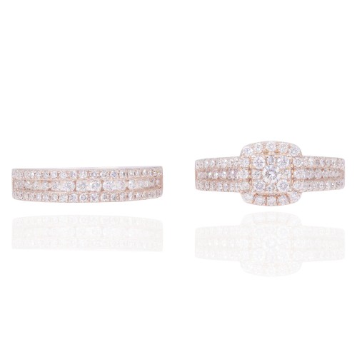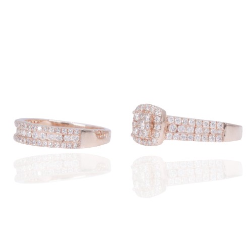 Princess Shape Diamond Engagement Ring with Halo and 3 Row Band 14KT Gold Rose Gold
