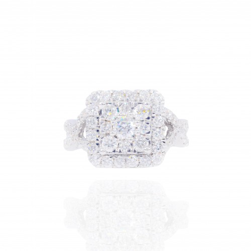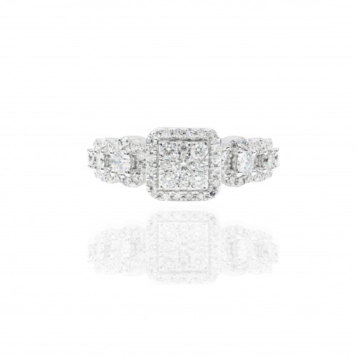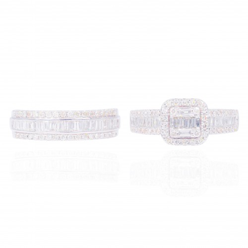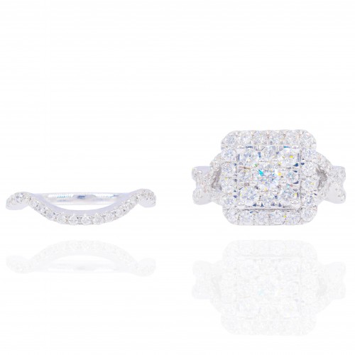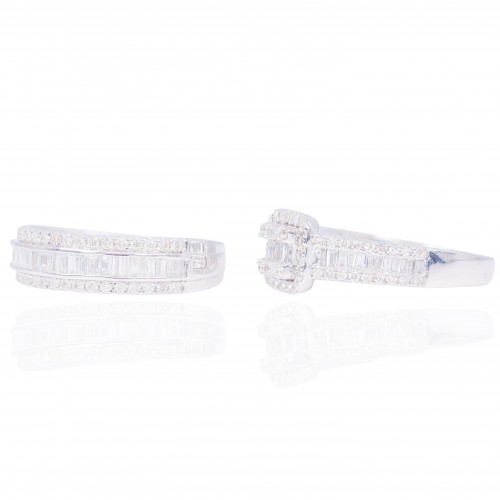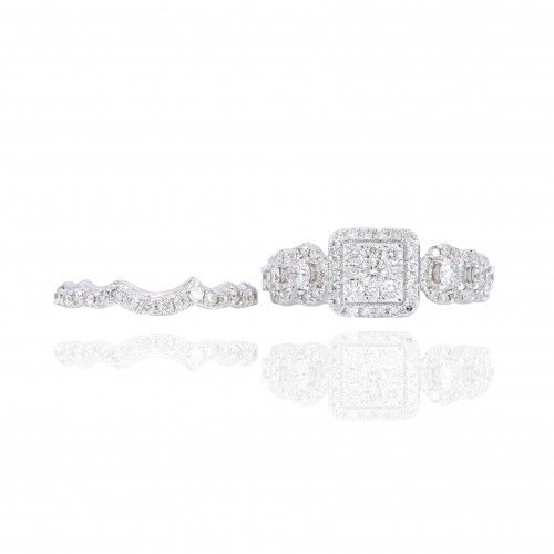 Princess Shaped with Halo Diamond Engagement Ring & Gradual Band 14KT Gold White Gold
