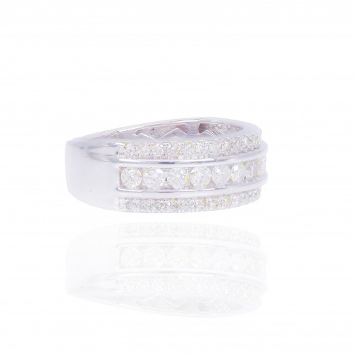 3 Row of Baguettes and Round Diamond Ring 14KT Gold Yellow Gold