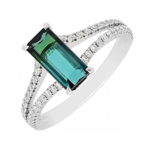 Maine Green Tourmaline Emerald Cut Ring in 14kt White Gold with Diamonds (1/5ct tw) RTMD1293
