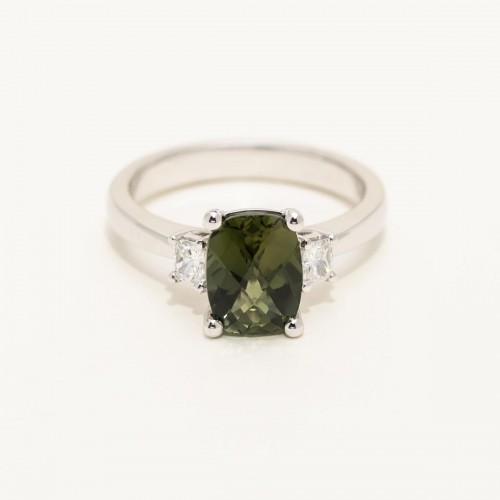 Maine Green Tourmaline Cushion Cut Ring in 14kt White Gold with Diamonds (1/4ct tw) CSRNG1086