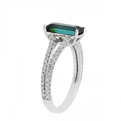 Maine Green Tourmaline Emerald Cut Ring in 14kt White Gold with Diamonds (3/8ct tw) CSRNG0869