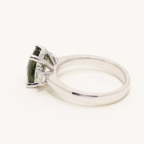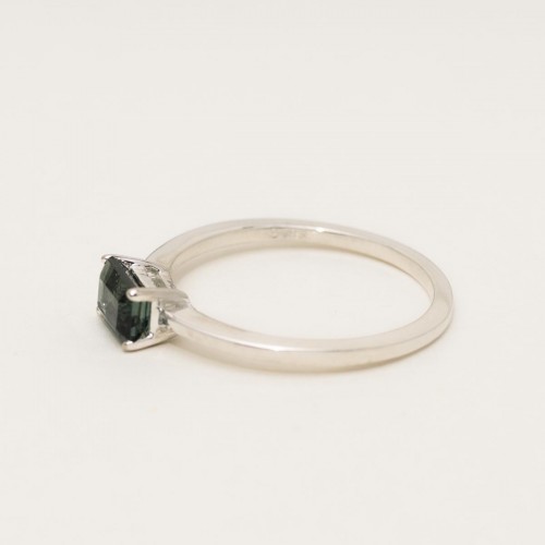 Maine Green Tourmaline Emerald Cut Ring in 14kt White Gold with Diamonds (1/5ct tw) RTMD1293