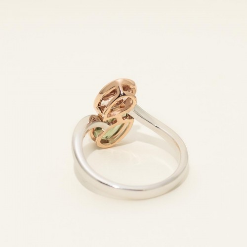 Maine Green and Pink Tourmaline Pear Shape Bezel Ring in 14kt White and Rose Gold CSRNG1534