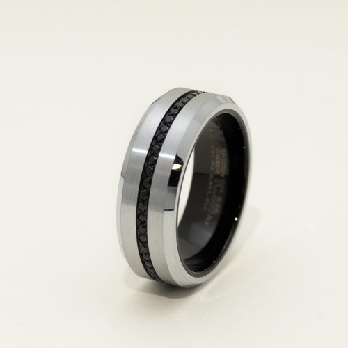 Mens Diamond Band in Black and White Tungsten (3/8ct tw) RWBD6965