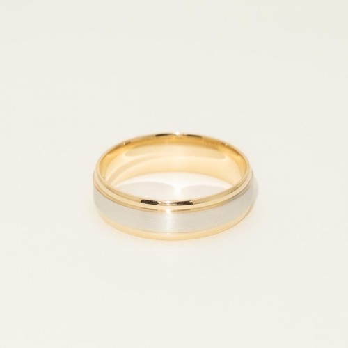 Mens Flat Brushed Finish Wedding Band in 14kt White and Yellow Gold (6mm) BND000306
